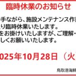 平素は、鳥取港海鮮市場かろいちをご愛顧いただき誠にありがとうございます。 誠に勝手ながら、施設メンテナンス作業のため下記の通り臨時休業いたします。 お客様にはご迷惑をおかけいたしますが、ご理解・ご了承のほどよろしくお願い …