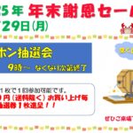 12月29日(月)に“年末謝恩セール”を開催いたします♪ ガラポン抽選会は、景品がなくなり次第、終了となります。 ご来場、お待ちしております!