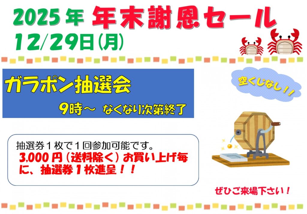 12月29日(月)に“年末謝恩セール”を開催いたします♪