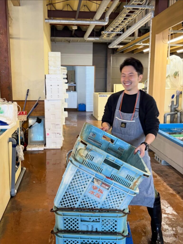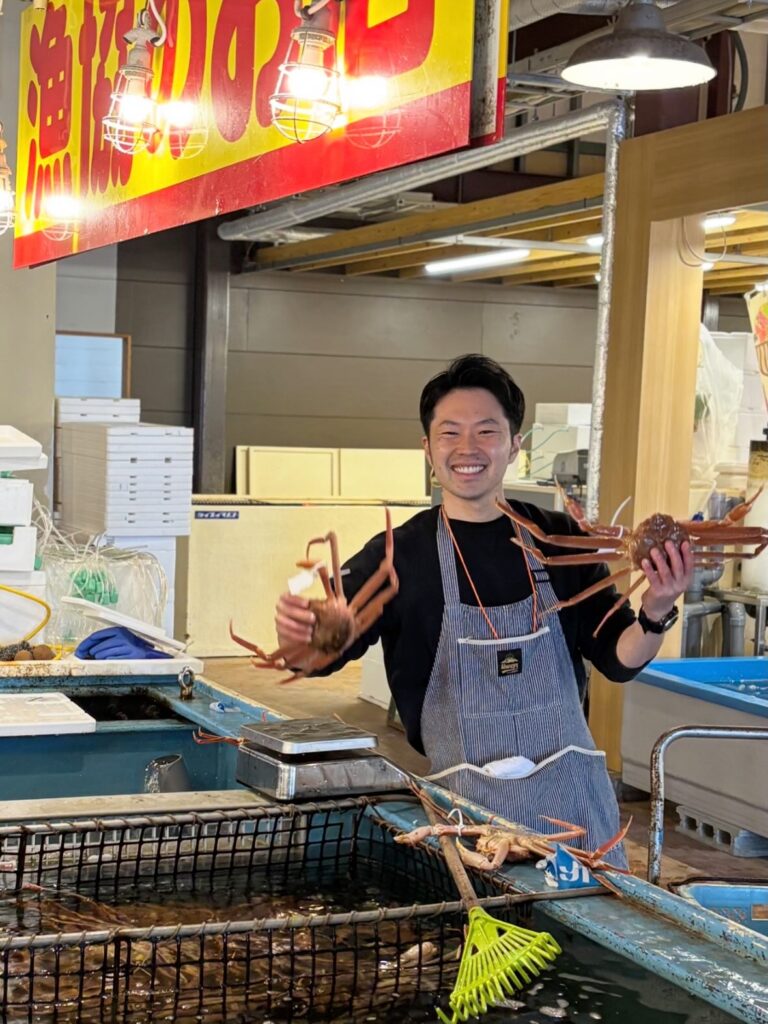松葉がに、いよいよ見納めです 届いたばかりの松葉がにを、水槽へ。 シーズン中、何度も見てきたこの光景も、 いよいよ本当に見納めとなりました。 久しぶりのDさんも、 ほっとした様子のこの笑顔😊 今シーズンも本当にお疲れさまでした! 明日からは春の三連休。 お天気にも恵まれそうです。 元気に動き回る松葉がにや、旬を迎えた新鮮な地魚を、 ぜひ楽しみにいらしてください🐟✨ 皆さまのお越しをこころよりお待ちしております!
